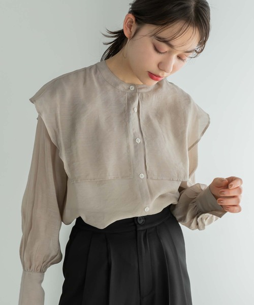 大きなセーラーカラーが目を惹くシアーブラウス存在感のある、大きなセーラーカラーがポイントのシアーブラウス。ほどよい透け感と、ふんわりとした袖が女性らしさを演出します。カジュアルなデニムパンツにもフェミニンなスカートにも合わせやすく、多彩なスタイリングに活躍するアイテムです。▼ATTENTION▼※摩擦や汗、雨等で濡れた場合、他の衣料に色移りする場合がございますのでご注意下さい。※撮影時のライティング、PCやスマートフォンの環境により写真の色味が実際の商品と異なって見える場合がございます。ご了承の上お買い求め下さいませ。モデル着用画像は実際の色と多少異なる場合がございますのでマネキン画像をご確認ください。※製造過程や素材により染料等の臭いが強い場合がございます。臭いが気になる場合は一度陰干しされてからご使用下さい。※着用衣装はすべて参考商品です。――――――――――《お買い物をもっと楽しむために!》■商品のお気に入り登録お気に入りの商品やカラーを登録していただくと値下げ・在庫1点・完売後の再入荷などの通知を随時受け取ることができます。■ブランドのお気に入り登録新商品の発売や再入荷、セール、クーポン配布などEditSheenのお得な情報を受け取ることができます。