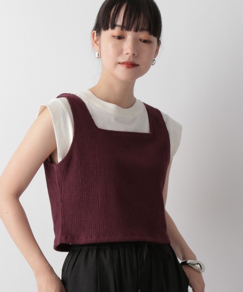■素材特性■ 綿ポリエステルの糸を使用し、表面の凹凸感がポイントの素材になります。 柔らかい風合いで着心地の良さも特徴になります。 ■デザイン■ シンプルなデザインのビスチェです。 タイト過ぎないサイズ感にして着用しやすくしました。 衿元はスクエアで女性らしい抜け感のある仕上がりに。 ■スタイリング例■ 同素材のシャツと合わせて着用してもらうのがオススメです。 イージーパンツなどと合わせてリラックス感のあるスタイリングやデニムパンツなどカジュアルなパンツとも相性よく着ていただけます。 同素材のパンツともセットで着ていただけます。