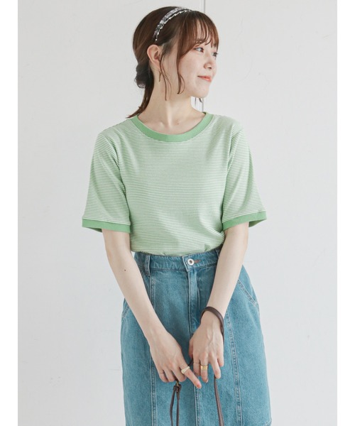 コーデのアクセントになる細ボーダー柄のリンガー半袖カットソー。 ジャストサイズな展開で上半身を華奢見せしてくれるのも嬉しいポイントです。ネックと袖の配色にメリハリがありコーデに立体感をプラス。 パンツ、スカート共にナチュラルに馴染みます。 ※商品画像は、撮影環境やお客様のご利用のPC・スマートフォンのモニター環境などにより実物と色味に差異がある場合がございます。