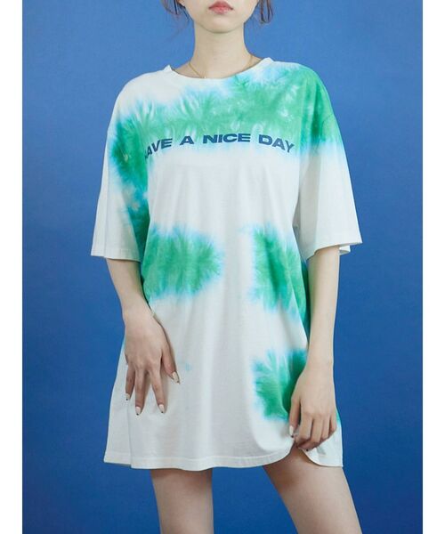 タイダイ加工をしたTシャツワンピースです。ワンピースやボトムスinでトップスとしても着用可能です。※手作業による加工になるので個体差が出やすい商品になります