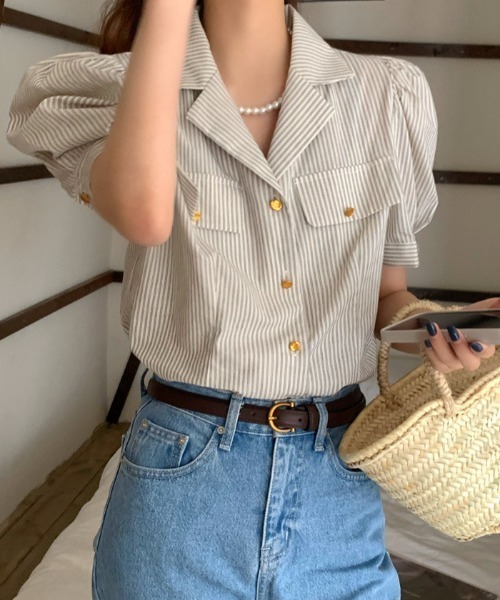 2022 Spring&Summer item 『爽やかなストライプ柄◎パフスリーブで女性らしいシャツブラウス』 〇Design 〈GRAY・BLUEの2色展開〉 ・夏定番のストライプシャツ、大人カジュアルなアイテムが登場。 ・シンプルながらも、ゴールドのボタンデザインで女性らしい印象に。 ・ふわっとしたパフスリーブで気になる二の腕カバーできるのも嬉しいポイント。 ・身体のラインを拾いすぎない、絶妙にルーズなシルエット◎ ・どこかレトロな雰囲気を持つ開襟シャツは、首元をすっきり魅せできる優秀アイテム! ・程よくきちんと感のあるデザインでお出かけはもちろん、通勤やオフィススタイルにも◎ 〇Styling マーメイドシルエットやIライン、フレアラインのスカートにウエストインをして着こなすと、 大人レディなスタイリングに仕上がります。 デニムやワイドパンツでカジュアルダウンしたり、スラックス×パンプスでキレイめのコーデなど 幅広いテイストのスタイルが楽しめます。 ショートパンツ×ローファーでこなれ感のあるトラッドスタイルもおすすめ! キャミワンピやオールインワンの中にインしてレイヤードを楽しむのも◎ 幅広いシーンで活躍できるアイテムとなっています。 韓国ファッションが好きな方は是非。 こちらの商品はセレクト・インポートアイテムのためサイズ感が日本規格のものとは異なります。 お買い上げの際にはサイズチャートでご確認頂きますようお願いいたします。 【お買い物をよりお楽しみいただくために】 ●商品のお気に入り登録(ハートマークをクリック) 完売カラーの再入荷や、ラスト1点のお知らせ、セール情報などの通知を受け取ることができます。 ●ブランドのお気に入り登録 新商品や再入荷など、お得な情報をいち早く受け取ることができます。 ●最短で翌日お届け 商品をカートに入れた後、注文内容の確認ページで「即日配送」を選択していただければ、最短でご注文した翌日にお届け致します。 是非ご利用頂き、お買い物をお楽しみください。
