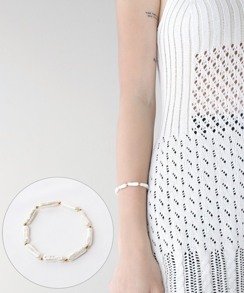 minsobi 淡水パールプレスレット 不揃いな形の淡水パールのようなビーズが雰囲気のあるブレスレットです。 伸縮性があるので、付け外しも簡単にできます。 どんなスタイルにも合わせやすいアイテムです。 ■ショッピングをお楽しみいただく為に 商品のお気に入り登録 お気に入りの商品やサイズ・カラーまで、お気に入りの登録をしていただきますと、そのアイテムのセールの通知、ラスト1点になった時の通知や、完売しても再入荷通知を受け取ることができます! ブランドのお気に入り登録 新商品の発売や再入荷、タイムセールやクーポン発行のお知らせなど、minsobi/SENGAENがお届けするお得な情報を受け取ることができます! ※通知はアプリでも受け取ることができますので、是非アプリの通知設定をお願い致します!