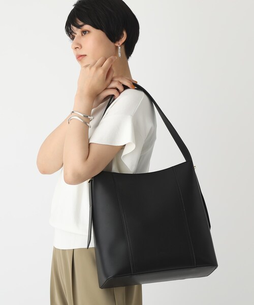 ワンハンドルディティールのA4サイズ収納可能なトートバッグ 【デザイン】 軽量の一枚フェイクレザーをシンプルにデザインしたA4ワンショルダーバッグです。 サイドのブリッジ金具がデザインポイント。 太めのワンショルダーは肩に安定して持ちやすく、体にフィットするので電車などでも邪魔になりにくく、天ファスナーがついているので防犯面も安心。 A4ファイルも横にして収納可能なので、通勤・通学にピッタリな上品なアイテムです。 【A4ファイル収納可】 ※ポケット数:内側×2 ■素材 ハリのある一枚革風フェイクレザーを使用しています。 ■スタイリング 通勤・通学のキレイめなスタイリングはもちろん、容量も大きいのでちょっとしたお出かけなどにもピッタリなアイテムです。 店舗へのお問い合わせ商品番号:C71-15003 ●製品寸法: 00:高さ31.5cm 幅(上部)28cm 幅(下部)30.5cm マチ13cm 持ち手上がり27cm 備考:重量:約395g