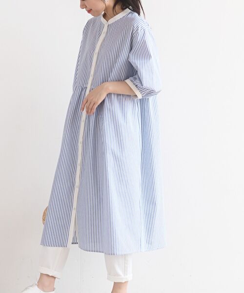 爽やかで上品なクレリックシャツワンピース ストライプとチェック柄のカラバリがコーデに清涼感をもたらすシャツワンピース。 パリッとした綿麻のような素材感でさらっと着られるシーズンライクなアイテムです。 衿と比翼、袖口を白無地で切り替えたクレリックデザイン。 きちんと感があり、上品なワンピスタイルが楽しめます。 ハイウエストのギャザー切り替えでふんわりガーリーに。 前開きタイプなのでさっと羽織ってレイヤードスタイルにもご利用いただけます。 ※同素材のシャツもございます 【バンドカラー7分袖シャツ】 0220600109で検索ください 裏地なし 伸縮性なし 薄手 前開きボタン留め 袖口ボタンあり 織キズやだま等は生地の特質です 洗濯:洗濯機使用可(ネット使用) ▼お気に入り登録でお得がいっぱい▼ ~商品をお気に入り登録~ 再入荷・ラスト1点・セールの通知を受け取ることができます! ~ブランドをお気に入り登録~ 《rps》の新商品・再入荷情報をいち早くお届け!