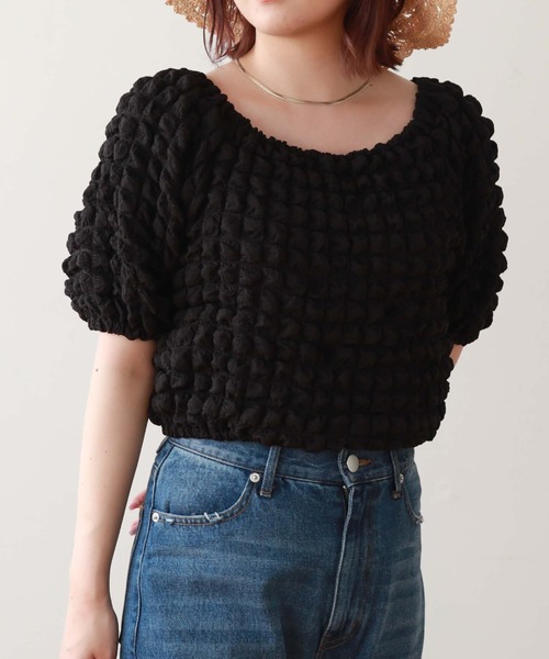 ■トレンド感満載の一枚■ポコポコとした表面感が可愛いトップスはこの夏のトレンド感満載なアイテム。一枚でしっかりとした存在感なのでデニムなどとシンプルに合わせるのがおススメ◎ポリエステルの素材なので扱いやすさも◎クルーネックなのでTシャツ感覚でさらっと着て頂けます。また首元はゴムなので肩を出してオフショルトップスとしても着用可能♪ーーーーーーーーーーーーーーー透け感:なし裏地:なし伸縮性:あり光沢感:なし生地厚さ:普通洗濯方法:洗濯可※詳しいお手入れ方法は商品についているタグをご覧くださいーーーーーーーーーーーーーーー※ご利用のモニター環境により、実際の色味と多少異なる場合がございます。… information … 欲しいitemをお気に入り登録(♡マークをclick) ・お買いのがし対策…完売itemの再入荷やラスト1点の情報をお知らせ ・欲しいitemをお得にget…pricedownになったらいち早くお知らせ ・スムーズ検索…ZOZOのお気に入りアイテムページで簡単checkできるから、再検索不要♪※ご注文いただいた予約商品のお届け時期の確認は、注文履歴ページより行えます。