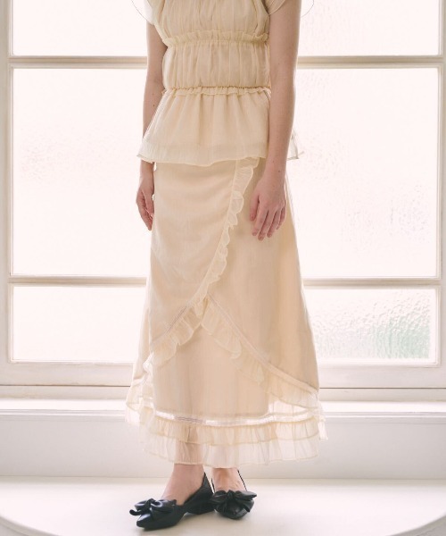 女性らしさを引き出すシフォンスカート ■ポイント ・ベージュ系の柔らかい色味が女性らしく魅せてくれます ・重なったスカートがボリュームがあり存在感のある一枚 ・裾の透け感、段になったフリル、生地と生地の間に レースを挟んでるのが贅沢なこだわりポイント ・後ろゴム仕様になっていて、楽にご着用いいただけます ・広がりすぎないAラインがガーリーすぎず、 フェミニンな印象に ■コーディネート ・ブラウスとセットアップでご着用いただくことで、 オケージョンコーデにもおすすめです ・ギンガムチェックブラウスやウエイトレスブラウスと 合わせることで、ガーリーに ・Tシャツと合わせることでカジュアルガーリーな コーディネートが楽しめます 透け感:部分的にややあり (黒や濃い色の下着は透ける場合がございます。) 裏地:あり 伸縮性:なし 生地の厚さ:薄め 着丈:6cm差 ウエスト:2cm差 洗濯:可(アイロンは当て布を使用) ▼商品のお気に入り登録(ハートマークをクリック) 完売アイテムの再入荷や、ラスト1点の通知、セールの通知も受け取ることができます。 ▼ブランドのお気に入り登録 新商品や再入荷、クーポン配布などのお得な情報を受け取ることができます。