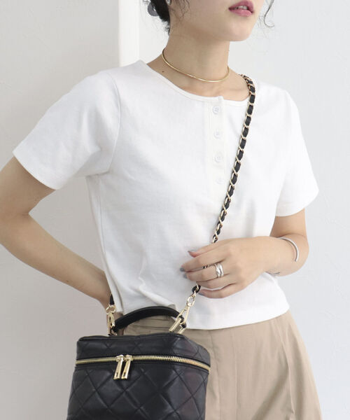◇fredy emue◇【2022】ショート丈が今っぽい、クロップドT●point・今年トレンドのちびTがヘンリーネックデザインで登場!・ヘンリーネックでこなれ感アップ・ややハリのある上質なコットン素材で身体のラインを拾い過ぎません・夏に嬉しい、通気性抜群の綿100%・ハイウエストのパンツ合わせで足長効果を狙うも良し、ウエストをチラッと肌見せも今年らしいヘルシー感が出ておすすめです透け感:なし裏地:なし伸縮性:あり光沢感:なし生地の厚さ:普通洗濯:手洗い可●お取扱い上のご注意●*商品を長くご愛用していただきたいため、アテンションタグを必ずご確認の上、着用又はお取り扱い下さい。*店頭及び屋外での撮影画像は、光の当たり具合で色味が違って見える場合があります。商品の色味は、スタジオ撮影の画像をご参照下さい。*商品画像に関しては出来る限り忠実に表示出来るよう努めておりますが、お客様がご利用のモニターの設定及び特性により、実際の商品と比較し色味に若干の誤差が生じる場合があります。*画像の商品はサンプルとなりますので実際の商品と仕様、加工、サイズが若干異なる場合がございます。◇商品のお気に入り登録◇【お気に入りに登録 ♡マークをクリック】を是非ご活用ください! 再入荷の通知や、ラスト1点の通知、セールの通知がいち早く届きます。◇ブランドのお気に入り登録◇新商品や再入荷など、いち早くブランドのお得情報が届きます。