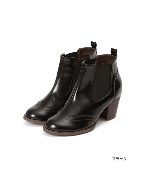 メダリオンデザインが可愛いサイドゴアブーツ。太ヒールなので安定感があります。