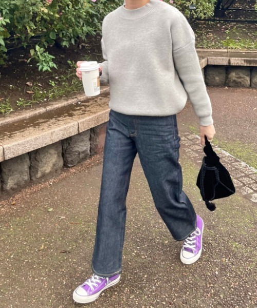 GIMME GIMMEオリジナルデニムパンツ ハイウエストで腰回りはフィット感があり、裾にかけてストレートなシルエットが特徴。 ハイカットのスニーカーに合わせても裾がもたつかない丈感になっています。 シンプルなトップスはもちろん、フェミニンなブラウスで女性らしく、ジャケットで綺麗めに合わせるなど、シーズンごとに様々な着回しの出来るアイテムです。 詳細補足 仕様:フロントファスナー・ベルトループあり 伸縮性:なし 透け感:なし 光沢:なし 裏地:なし 厚さ:普通 サイズ感:やや細身 取扱注意事項 ※サイズは、測定方法と測定者によって多少の誤差がありますのでご了承下さいませ。 また体型によって、サイズ感に個人差がございます。(平置き採寸) ※商品によってはシワがつきやすく、畳ジワや折りジワなどが強く出る場合がございます。 その際は加湿した風呂場に数時間干すか、スチームアイロンでのお手入れをお勧めしております。 ※生地の素材上、においが気になる場合がございます。 その際は陰干しして頂くと、ほとんど感じられなくなります。 ※レース等の繊細な素材を使用している場合には、お取り扱いにご注意下さい。 ※お洗濯の際には、洗濯専用ネットをご使用の上、個別での洗濯をお勧め致します。 お色物は、色移りする可能性がございます。 ※着用画像は撮影状況や光によって、多少異なる場合がございますので、置き画像をご確認下さい。