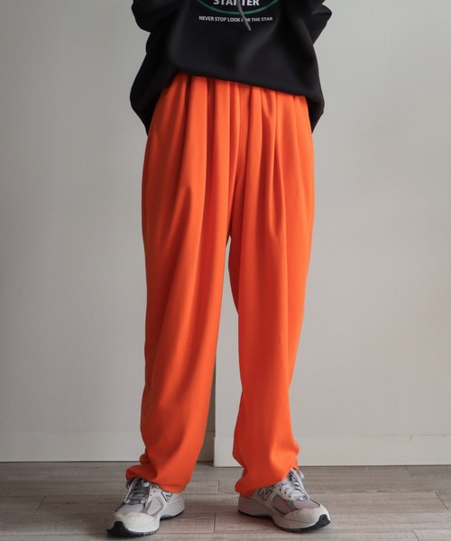 ギャザーたっぷり、神シルエットスウェットパンツ -detail- ウエストにたっぷり入れたギャザーの立体感で、下半身のシルエットを拾いにくく、下に向かってストンと落ちるのでこなれ感がありおしゃれ。 ウエストはゴムでゆったり、ドローストリングで調整できるので、幅広い体型の方におすすめな、リラクシーで履き心地の良いイージーパンツです。 ワイドすぎない程よいテーパードシルエットで、スウェットパンツは部屋着感が出てなかなか着こなせない…という方も、一度履いてみていただきたい神シルエットパンツ。 -fabric- 速乾性があり、軽くリラクシーな履き心地。 ホワイトのみ裏地を裾まで付けております。 -styling- どんなトップスにも合う万能パンツ。 アメスリタンクやコンパクトなTシャツ、トレンドのショート丈トップスなどと合わせ、メリハリがあるスタイリングがおすすめです。 ビックシルエットのカットソーを合わせ、ゆるっとしたメンズライクな着こなしも◎ 足元にはトングサンダルやグルカサンダルなどで抜け感を出すとこなれた印象になります。