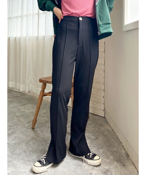カジュアルスタイルに欠かせないカラーパンツがきれい目シルエット×楽ちん素材で登場。ジャージのようにサラッとした肌触りのリブ素材を使用し、毎日でも履きたくなる快適な履き心地に。センターラインと、裾のスリットが脚をすっきりと綺麗に見せてくれます。右後ろのポケットにさりげなくあしらったロゴ刺繍もポイントです♩・・・・・・・・・・・・・・・・・・・・・・・・・・・・・・・・・・・・・・・・・・・・・・・◆アイテム詳細素材・・ポリエステル92% スパンデックス8%透け感・・なし生地の厚さ・・普通 伸縮性・・あり裏地・・なしウエスト部分(前側)・・ボタン+チャックウエスト部分(後ろ側)・・ゴム・・・・・・・・・・・・・・・・・・・・・・・・・・・・・・・・・・・・・・・・・・・・・・・◆サイズ感2サイズ展開になっているので、身長や体形に合わせてお選びいただけます。生地にはリブ素材を使用しており、伸縮性があるので、窮屈感を感じにくいアイテムです。◆スタイリングウエストの前部分がボタンとチャックになっているので、トップスをインしたり、コンパクトなトップスと合わせても綺麗に見えるシルエットです。ブラウスやチュニックの下に履いて差し色として使うのもおすすめです♩