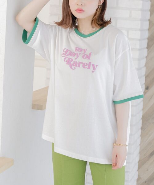 <リンガーデザインがポイントのTシャツ>▼デザインカジュアルな印象のリンガーTストリート感のあるロゴに配色の幅広めのリブを配したヴィンテージ感漂うアイテムです。女性らしさも生かしたデザインでシンプルながらもこなれ感のでるアイテムです。リンガーデザインとロゴのカラーのバランスがよく可愛らしさの溢れるTシャツ▼コーディネートカジュアルなアイテムなので女性らしいスカートなどとのコーデで大人カジュアルスタイリングがオススメ!------------------------------生地感:普通伸縮性:ある透け感:なし(ホワイトは多少の透け感あり)裏地:なし------------------------------ems excite (エムズエキサイト)“more fun more cute”今をもっと楽しくもっと可愛くいたい女の子に向けたgirly cuteなブランド#ロゴt#ビッグt#ビッグシルエット #カラーt#カジュアルコーデ▼注意事項※撮影環境やモニター環境によって実際の商品とお色味が多少異なってみえる場合がございます。品番:EL254011B001 / 品名:リンガー半袖ロゴTee