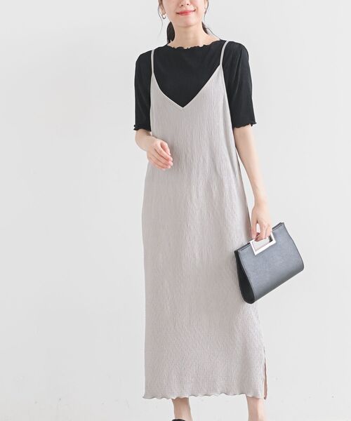 女性らしいタイトシルエットのキャミワンピ すとんとした落ち感が女性らしい印象を与えるキャミワンピース。 表面感のあるプリーツデザインでエレガントな雰囲気も感じられるデザインになっています。 (ブラック系その他2はまっすぐなラインの少し太めのプリーツ、それ以外はウェーブがかったランダムなプリーツ) 裾はメロウ加工を施して足元をフェミニンに。 サイドスリット入りで足さばきもよく、装いにこなれ感を与えてくれます。 きれいめなブラウスやカジュアルなTシャツなど合わせるインナーで印象も変わるからコーデの幅も広がります♪ 裏地なし 伸縮性あり 薄手 肩紐アジャスターあり (ブラック系その他2) 洗濯:ドライクリーニング (ブラック・モカ・ライトベージュ・グレイッシュブルー) 洗濯:洗濯機使用可(ネット使用) ▼お気に入り登録でお得がいっぱい▼ ~商品をお気に入り登録~ 再入荷・ラスト1点・セールの通知を受け取ることができます! ~ブランドをお気に入り登録~ 《rps》の新商品・再入荷情報をいち早くお届け!