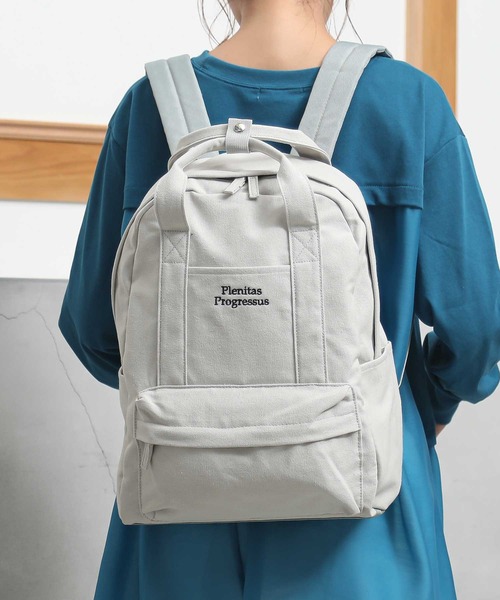 キャンバス生地のスクエアリュック。 ・ 使い勝手のいいキャンバス生地のリュックです。 ・ ガバッと大きく開くので中が見やすい! ・ 裏地も付いているので、中身が透ける心配もありません。 ・ 内側には、オープンポケット、ファスナーポケット、ギャザーのオープンポケットが1つずつ付いています。 ・ 外側には、小物の収納に便利なファスナーポケット、オープンポケットが1つずつ、ペットボトルを立てたまま収納できる両サイドポケットが付いています。 ・ 背面ファスナーはメイン収納へ直接アクセスできるので便利です。 ・ デイリーユースはもちろん、通勤通学、レジャーにもおすすめです。