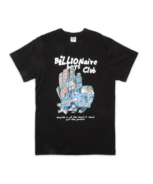 フロントに施された〈Billionaire Boys Club〉のロゴとグラフィックが特徴的な、ハーフスリーブTシャツ! グラフィックの下には、ブランドステートメントである”WEALTH IS OF THE HEART AND MIND,NOT THE POCKET.”のプリントも。