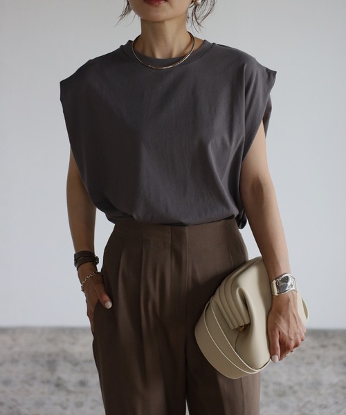 立体感のあるショルダーデザインが魅力的な一枚《スタイリング》一枚ではもちろん、サロペットパンツなどレイヤードスタイルもおすすめです。タックパンツとインスタイルでまとめてもらうとバランスよく着ていただけます。ベーシックなカラー展開なので、夏らしくカラーアイテムとも相性抜群。《ディテール》タックデザインが二の腕を隠してくれるのが嬉しいポイントです。窮屈感なくラフに着ていただけるので、デイリーアイテムとして重宝します。《ファブリック》コットン100%で肌ざわりの良い素材------------------------透け感/なし光沢感/なし伸縮性/なし裏地/なし厚み/普通------------------------【Information】◆《お気に入り登録》がオススメ◆・「商品のお気に入り登録」で再入荷通知や、ラストの通知、セール通知も受け取ることが出来ます。・「ブランドのお気に入り登録」で新商品や再入荷など、お得な情報を受け取ることが出来ます。※撮影時のライティング、ご覧になっているモニター・PC環境により、実際の商品と色味が異なって見える場合がございます。予めご了承をお願い致します。※モデル着用画像は実際の色と多少異なる場合がございますのでトルソー画像をご確認ください。