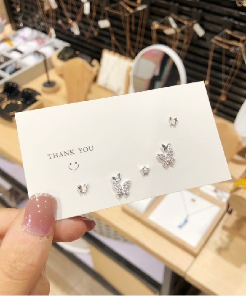 ピアスの針はお肌にやさしいシルバー925。 お顔周りにたくさん蝶々が集まってきたような可愛いデザインです♡ オフィスにも学校にも付けていけるシンプルなデザインです☆ ◎お肌にやさしい素材を使用しておりますが、 全ての方がアレルギーを起こさないというわけではございません。 異常を感じた場合は使用をお控え下さいませ。 ※silver925製ポストの製品は、ポストが大変曲がりやすくなっております。着用時には十分ご注意ください。 ※水濡れ・汗等は色落ち、変色の原因となりますので水分が付着する可能性がある場合には必ずお外しください。 ※表面に細かなキズや凹みハゲがある場合がございますが不良ではございませんので予めご了承ください。 ※キャッチの種類はいくつかございますが選択はできません。 ♪♪♪商品をご覧いただきありがとうございます♪♪♪ 完売カラーの再入荷などの情報につきましては、以下ご参照ください。 ▼商品のお気に入り登録→【カートに入れる】右側のハートマークをクリック完売カラーの再入荷通知や、 ラスト1点の通知、セールの通知も受け取ることができます。 ▼ブランドのお気に入り登録→ブランドタグのページからお気に入りをクリック 新商品や再入荷などいち早くブランドのお得な情報を受け取ることができます!