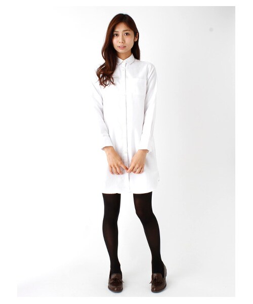 綿/ポリエステルのオックス素材を使用した、オックスのシンプルなシャツワンピースです。飽きのこないすっきりとしたデザインで、マチ付の脇裾とスッキリとしたシルエットがポイントです。ニットのインナーやショートブーツスタイルがおすすめです。