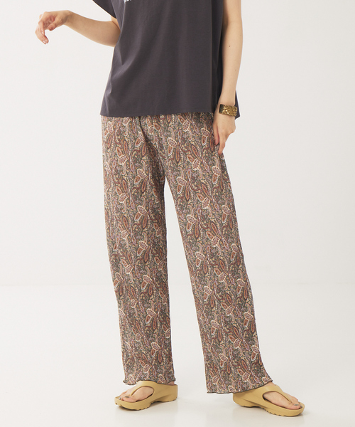 シックなペイズリー柄のイージーパンツ。 プリーツ加工で肌に張り付きにくく、清涼感のある素材感です。 ワンピースとのレイヤードにもおすすめです。