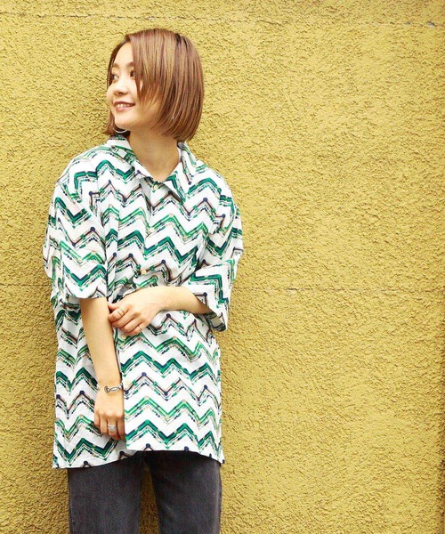 ジグザグ柄の総柄が印象的な、存在感◎の開襟シャツ。程よくゆとりを持たせたシルエットで、リラックスして快適に着用頂けます。