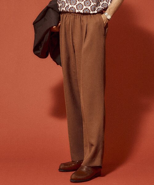 《夏を乗りこなすラブークルの”サマーツイード”》 ご好評頂いているEDIFICE LA BOUCLEのイージーパンツコレクションから新作が登場! 最大の特徴はその素材。 “サマーツイード”と呼ばれる夏素材を使用しています。 その名の通りツイードのような凹凸のある織りが特徴で、シャリっとしたドライな肌触りは履いた瞬間に感じる圧倒的な清涼感がクセになります。 もちろん夏の季節に使用することを考えイージーケアなポリエステルを使用しているので、シワになりにくく、ご自宅でお洗濯が可能な点もオススメポイントです。 ベースとなるのはスラックスの様な綺麗なシルエットと軽さ、手軽さを掛け合わせたEDIFICE LA BOUCLEを代表する万能シルエット。 ラブークルから満を持してリリースする、長い夏の味方になってくれる事間違いなしの一本です。 ********************** 透け感:なし 裏地:なし 伸縮性:なし 光沢感:なし 生地の厚さ:普通 ********************** 【スタッフ着用コメント】 《スタッフA》 身長:178cm/体重:60kg/普段サイズ:L/着用サイズ:2 サイズ感:全体的にゆとりのあるシルエット 素材感:風合いのあるツィード見えをしたポリエステル素材 着心地:ウエストゴムの仕様とゆったりしたシルエットと分量感の少ない素材により軽い穿き心地です ********************** 【IENA EDIFICE LA BOUCLE / ラブ―クル】 IENAとEDIFICEから新しいコンセプトブランドが誕生。 コンセプトは「ありふれた日常に、ちょっとした非日常を」。 上質で本物を求める大人の女性・男性に向けたコンセプトブランドです。 【ご注意】 ※商品の色味につきまして、お客様のお使いのPCのモニター環境により実際のカラーと画像の色味が違って見える場合が御座います。予めご了承の上、ご注文下さい。 ※店頭・外での撮影画像は光の加減で、実際の商品より明るく見える場合が御座います。商品の色味はスタジオ撮影の画像を参考にして下さい。 本体:手洗い可能