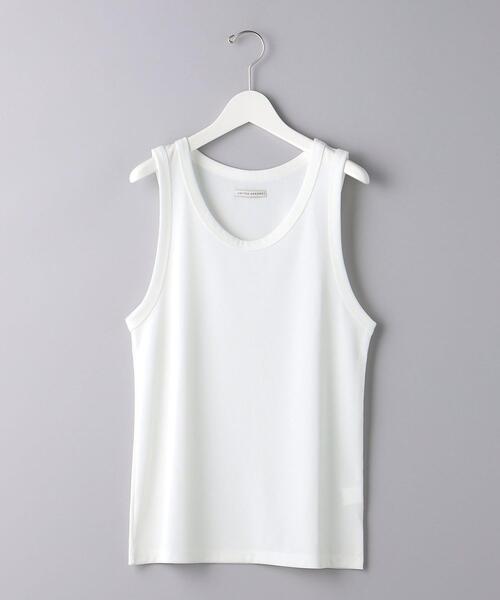 ■デザイン スッキリとしたデザインカットのタンクトップです。 シャツやTシャツの下から透けた際にも見栄えが良くなるよう、フォルムにこだわりました。 ネックは開き過ぎず、前開きのシャツやカーディガンのインナーとして組み合わせやすいデザインも特徴です。 ■素材 ポリエステルのテレコ素材。テレコの特徴であるヨコ方向への伸びがよく、身体へフィットします。滑らかで肌触りが良い編み地は着心地も快適です。 ■コーディネート 一枚での使用はもちろん、シャツやTシャツ、カーディガンなどトップスを選ばずインナーとしても重宝します。 ============================ 透け感:WHITEのみややあり 光沢感:なし ケア方法:家庭洗濯 ============================ 【注意事項】 ※商品を使用前に、タグ等に記載されている「取り扱い上の注意書き」、「洗濯表示」を必ずご確認ください。 ※商品画像は、光の当たり具合やパソコンなどの閲覧環境により、実際の色味と異なって見える場合がございます。予めご了承ください。 ※商品の色味の目安は、商品単体の画像をご参照ください。 店舗へお問い合わせの際は、全国のUNITED ARROWS各店舗まで下記の品名/品番をお申し付け下さい。 品名:ua TELECO TANK TOP 品番:11171992896
