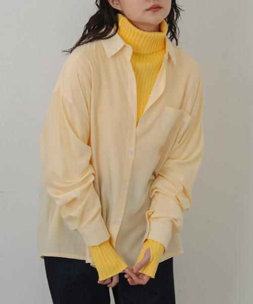 【カラービッグシャツ】 夏もさっと羽織れるこなれカラーシャツ いつものコーデにプラスワンしてトレンド感のある着こなしに 《point》・秋口まで活躍する薄手シャツ ・ルーズシルエットでこなれ感をプラス♡ ・落ち感があり上品な印象 ・夏の肩掛けスタイリングにも …………………… 透け感 : あり 厚さ:薄い 伸縮性:なし 裏地 : あり お手入れ方法 : 手洗い洗濯推奨 ※洗濯機で洗う場合はネットに入れ、おしゃれ着洗剤を使用して下さい。 …………………… 《detail / fabric》羽織りとしても着られるルーズシルエットシャツ。 レーヨンの落ち感がニュアンスのある着こなしにまとめてくれます。 ※ご注意※ ・屋外の光や照明の当たり具合で、実際の商品の色味と カラー別画像の色味に若干の違いが発生する場合がございます。 ・詳細画像と併せてご確認の上、ご注文いただきますようお願い致します。 【merlot】 #カワイイハオモシロイ カワイイを自分らしく楽しむ女性へ ユーモア&ハッピーそしてちょっぴりモードに 大人の休日にとびっきり可愛くなれるお洋服を提案 【商品のお気に入り登録】 完売カラーの再入荷通知やラスト1点の通知、プライスダウンの通知を受け取ることが出来ます。 【ブランドのお気に入り登録】 新商品や再入荷など、嬉しい情報を受け取る事が出来ます。 ぜひご登録ください◎