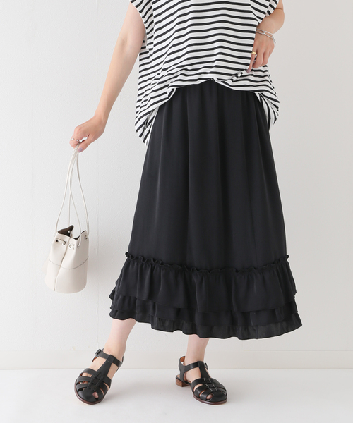 【2022SS】JOURNAL STANDARD relumeフリルがアクセントの新作スカートが登場。女性らしいデザインなのでカットソーなどカジュアルなアイテムとも相性抜群!ウエストはゴム仕様で楽な穿き心地も嬉しいポイントです。甘くなりすぎない《ブラック》と《グレー》の2色展開でご用意致しました。秋冬はスウェットやニットと合わせてもお勧めです。※取り扱いについては、商品についている表示でご確認ください。モデルサイズ:身長:153cm 着用サイズ:フリー本体:洗濯機洗い(弱)
