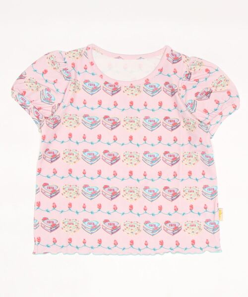 伸縮性のあるやわらかなカットソー素材に , 新柄をプリントしたパフスリーブ T シャツです。