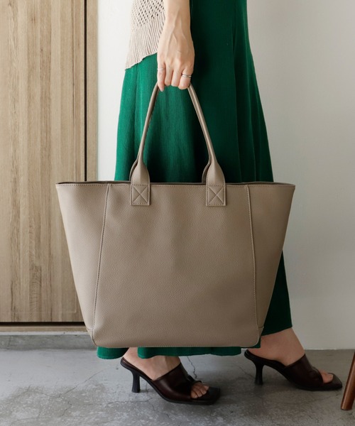 【デザイン】 大容量ビジネストートバッグ ユニセックスで使えるシンプルデザインのトートバッグ。 シボのある柔らかいフェイクレザーを使用し、きれいめで上品な印象に。 ポケットが豊富に備え付けられ、タブレットや充電器等も分けて収納可能。 しっかりとマチがあるので、ビジネスバッグにぴったりです。 カジュアルはもちろん、きれいめスタイルにもお使いいただけます。 【仕様】 メイン開閉は、ファスナー仕様に。 ・外ポケット:背面マグネット付きポケット1、上部オープンポケット1 ・内ポケット:オープンポケット3、ファスナー付きポケット2、ホックベルト付き収納1 【注意事項】 合成皮革特有のにおいがする場合がござます。 においが気になる場合は一度陰干しされてからご使用ください。 ◆商品のお気に入り登録◆ 完売カラーの再入荷通知や、ラスト1点の通知、 セールの通知も受け取ることができますので、是非ご登録ください。 ◆ブランドのお気に入り登録◆ 新商品や再入荷などの情報を受け取ることができますので、是非ご登録ください。