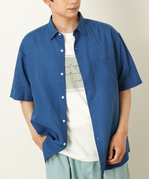 ◆「ハイブリッドリネン」シリーズ 【イージーケア/洗濯機で洗える/接触冷感/速乾/ストレッチ】5つの多機能素材を使用したこだわりの詰まった5分袖ワイドシルエットシャツ。◆【デザイン】きれいめ・カジュアル・テレワークと様々なシーンに対応するハイブリッドなリネンシャツ。羽織るだけで大人のリラックススタイルになる夏服にぴったりの一枚です。ワイドシルエットなので、インナーを選ばずにレイヤードスタイルも楽しむ事が出来ます。又、ボディーラインを拾いづらいのでリラックスしてご着用いただけます。袖丈はひじが隠れる程度の5分袖にしているので、よりトレンド性の高いシルエットになっています。シンプルでスッキリとしたデザインのため、幅広いシーンで活躍する定番アイテムです。【素材】麻とポリエステルを使用した清潔感のあるやや薄手の夏向け素材を使用。着用してもシワになりずらいイージーケア加工。羽織るとひんやり涼しい接触冷感機能。洗濯をしても乾きやすい速乾機能。このような多機能素材を使用しているため、夏の暑い毎日でも快適に過ごすことができます【スタイリング】シャツハオリとしてシンプルに無地カットソーやトレンドではフォトTとあわせるのがオススメ。ボトムははきれい目スタイルであればスラックス合わせ、カジュアルスタイルであればタック入りなどのゆとりのあるパンツとあわせるとバランスが良いコーディネートができます。----------------透け感:あり裏地:なし伸縮性:ややあり光沢感:ややあり生地の厚さ:薄手----------------※52/XXL サイズはWEB限定販売です。※お使いの液晶環境により、色味が多少異なる場合がございます。予めご了承ください。※サンプルにて撮影しておりますため、お届けの商品と仕様が若干異なる場合がございます。予めご了承ください。