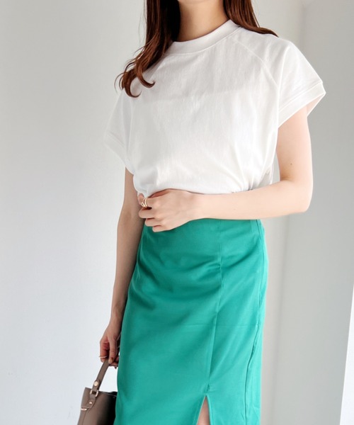 カジュアルだけじゃない、きちんと感のある上質トップス♪▼ポイントしっかりとした生地感でコットンライクならではの風合いや素朴さ、色味が魅力のアイテムです。首元から袖にかけて斜めに切替の入ったラグランスリーブはフレンチスリーブでグッと女性らしい印象に◎フレンチスリーブの丈感で、二の腕もすっきり華奢見えします♪体にフィットしすぎないゆとりあるシルエットなのでカジュアルさもそのまま残し、絶妙のバランスに仕上げました♡デイリースタイルにもオフィススタイルにも一枚でコーデが広がる万能トップスです♪トレンドのキャミワンピースのインナーとしてもナロースリットスカートやマーメイドスカートでレディーライクなコーデやタックパンツやフレアパンツ定番のデニムのコーデもおすすめです◎足元はグルカサンダルやロープサンダル、ミュールも相性抜群です♡※ご覧のモニター・撮影環境により実際の商品と多少色味が異なって見える場合がございます。予めご了承をお願いいたします。【お買い物をよりお楽しみいただく為に!】▼商品のお気に入り登録ハートをクリック!完売カラーの再入荷や、ラスト1点の通知、セールの際の通知を受ける事ができます。▼ブランドのお気に入り登録新商品や再入荷など、いち早くブランドのお得な情報を受け取ることができます!