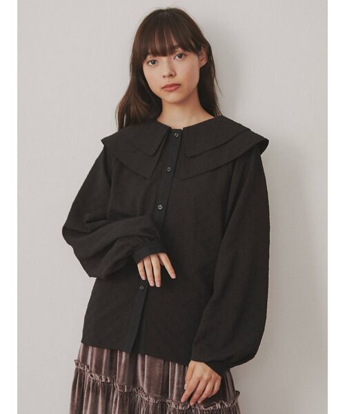 2枚重ねた大きな襟が特徴のブラウス。お花の同色ジャガード生地を使用し、よりgirlyに仕上げました。ぽこぽこ立体感のある素材を使用しているのでお取り扱いもしやすくなっています。ブラウスメインのコーディネートはもちろん、冬にはトレーナーやニット、ノースリーブワンピースとのレイヤードなど着回し力も抜群です。