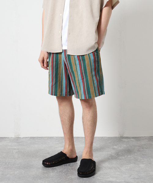 夏コーデに欠かせないショートパンツ、JOURNAL STANDARDがこの夏おすすめするのがメキシカンストライプショーツ。 単調なコーディネートになりがちなこの時期は、柄物のアイテムを取り入れることで普段とは違った印象になります。合わせるのが難しそうに見えるストライプ柄ですが、シンプルなアイテムと合わせることでテクニックが光り、足元をすっきりさせてることで大人の雰囲気になります。 ウエストはワンタック仕様で腰回りにゆとりがあり、生地はコットン100%素材で柔らかい肌触りのため、夏でも快適に着用いただけます。 ********************** 裏地:なし 伸縮性:なし 光沢感:なし 生地の厚さ:普通 ********************** モデルサイズ:身長:178cm 着用サイズ:L 本体:洗濯機洗い(弱)