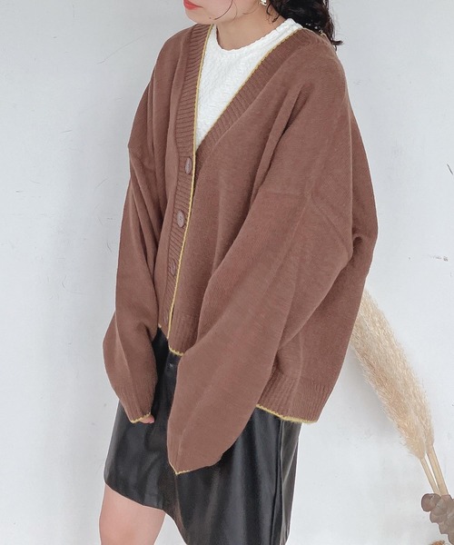 ゆるっとルーズなシルエットが今っぽい☆ニットカーディガントレンドライクなカラーリングとルーズなサイズ感が旬なカーディガンは、今年手に入れておきたいマストアイテム!!ふわっとした柔らかさで着心地が良いニットだから着心地も抜群☆深めのVネックに、配色カラーのパイピングデザインが今っぽく、レイヤードスタイルにもぴったりな一枚◎ミニ丈ボトムやルーズなパンツなどゆるい着こなしや、人気のカラーパンツとあわせてカラーミックスコーデで旬なスタイリングも決まります。※こちらの画像は全てサンプルで撮影をしております。※実際の商品とサイズ、カラー、仕様、加工感が若干異なる場合がございますのでご了承ください。▼商品について・画像の商品はサンプルとなります。実際の商品と色味、仕様、加工、サイズ、素材等が若干異なる場合がございます・サイト上のカラー名と、お届け商品に記載されているカラー名が異なる場合がございます。・商品の色味は、撮影場所や光のあたり具合などにより色味が違って見える場合がございます 。また、お客様のお使いのPCのモニター環境などにより色味が違って見える場合がございます。予めご了承の上ご注文下さい。▼お取り扱いについて・着用またはお取り扱いの際は、アテンションタグや洗濯ネームを必ずご確認ください。▼返品・キャンセルについて・着用、洗濯後の返品は致しかねます。・商品到着後、着用前に商品を確認して頂きますようお願い致します。♪商品のお気に入り登録お気に入り登録した商品は、ラスト1点になった時、完売商品の再入荷、セールになった時にお知らせします。♪ブランドのお気に入り登録新商品の発売、再入荷、セール情報など、ブランドのお得な情報を受け取ることができます。