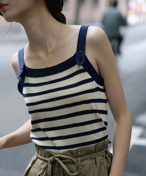 2022 Spring&Summer item 『BASICな無地デザインとトレンド感のあるマルチボーダーのキャミタンク』 〇Design 〈IVORY・NAVY・WHITE/NAVY・WHITE/REDの4色展開〉 ※カラーによりデザインが異なるのでご注意ください ・今季マストのコンパクトトップス!配色ストラップがアクセントのキャミソールが登場。 ・シンプルで大人上品な無地デザインと、夏定番のボーダー柄の2種類のデザインをご用意。 ・コンパクトな丈感がトレンドライクなスタイルに◎ ・シンプルながらも配色デザインとボタンストラップデザインがさりげなくお洒落…! ・カップは付いていないので、カップ付きインナーを合わせていただくのがおすすめです。 〇Styling パンツ、スカート問わず合わせやすいデザインなので、 デニムやワイドパンツでカジュアルな着こなしや、 タイトスカート、マーメイドラインやAラインのロングスカートで女性らしいスタイリングも◎ 春夏らしくリネンライクのパンツと合わせるのもおすすめです! シンプルなのでキャミワンピやオールインワンのインナーとしても活躍。 足元はトングサンダルやグルカサンダル、スニーカーで抜け感を◎ トレンドライクなボーダー柄で今季らしいスタイルに仕上がるアイテムとなっています。 韓国ファッションが好きな方は是非。 こちらの商品はセレクト・インポートアイテムのためサイズ感が日本規格のものとは異なります。 お買い上げの際にはサイズチャートでご確認頂きますようお願いいたします。 【お買い物をよりお楽しみいただくために】 ●商品のお気に入り登録(ハートマークをクリック) 完売カラーの再入荷や、ラスト1点のお知らせ、セール情報などの通知を受け取ることができます。 ●ブランドのお気に入り登録 新商品や再入荷など、お得な情報をいち早く受け取ることができます。 ●最短で翌日お届け 商品をカートに入れた後、注文内容の確認ページで「即日配送」を選択していただければ、最短でご注文した翌日にお届け致します。 是非ご利用頂き、お買い物をお楽しみください。