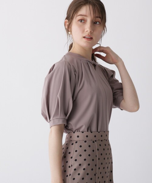 【マシンウォッシャブル】 一枚で着映える!index定番人気素材を使用した、ツイストハイネックハーフスリーブカットソー 【素材】 リラクシーな着心地のストレッチ糸をブレンドしたレーヨン・ナイロン素材を使用。 さらっとした着心地ながら、肉感があり透けにくいです。 程よい光沢のある表面は、ブラウスライクなきちんと感をプラス。 ハリ感があり、構築的なデザインが美しく仕上がります。 ※オフホワイト(003)ベージュ(052)はやや透け感があるため、インナーの着用をおすすめします。 【デザイン】 えりもとのツイストデザインがトレンドの上品な肌見せを叶えてくれます。 胸元にタックをいれ、顔周りに華やぎをプラス。 袖口にもタックを効かせてボリューム感を出し、二の腕をしっかりカバー。 金ボタンの後ろ開きが着脱しやすさとバックスタイルのポイントに。 ※WEB限定サイズ:36(S)・42(LL) こちらの商品は主に秋に着用いただける商品です。 モデル情報:身長163cm B81 W56 H82 着用サイズ:38(M) 店舗へのお問い合わせ商品番号:C58-15201 ●製品寸法: 36(S):着丈56cm B86cm 袖丈29cm 肩幅32cm 38(M):着丈58cm B88cm 袖丈29cm 肩幅33cm 40(L):着丈60cm B90cm 袖丈30cm 肩幅34cm 42(LL):着丈62cm B92cm 袖丈31cm 肩幅35cm 備考: