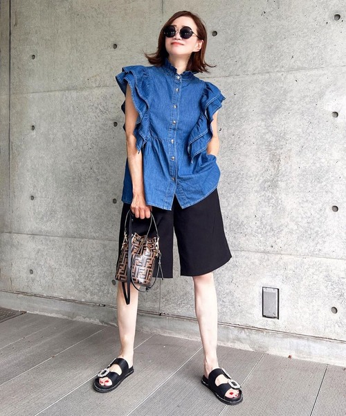 大人カジュアルコーデをするならコレ。 デニムでカジュアルさを出しながらも、袖や首元の立体的なフリルが女性らしさをプラス。柔らかいデニム素材なので軽くて、動きやすく暑い夏でも着心地◎。 ボリュームのあるフリルデザインなので細見え効果も。 ボトムスを選ばず、インでもアウトでも着こなせる着回し力抜群のアイテムです。 ■コーディネートアイテム パンツ…bg75c05048 ■商品仕様 コットン生地 裏地…なし 伸縮性…なし 透け…なし ポケット…なし 付属品…なし 着脱…前開きボタン ※着用の際、摩擦や発汗により衣類やバッグ等に色移りの恐れ(特に淡色系のもの)がありますので、十分ご注意下さい。 ※繊細な生地ですのでお洗濯などのお取り扱いには十分ご注意ください。詳しくは下げ札をご覧ください。 【ご購入前に必ずご一読下さい】 ※モニタ環境によって、商品の色合いが多少異なる場合がございます。 ※色落ちの恐れがありますので、他のものと分けてお洗濯して下さい。 ※商品をお安く提供させて頂く為、検品後のアイロン掛けは省略させて頂いています。 発送時も簡易梱包の為、お受け取り時にたたみ皺があると思いますがご了承下さい。