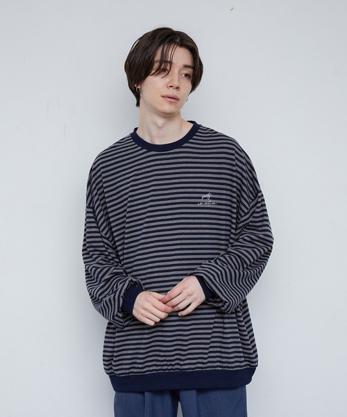 【ワイドシルエット】クラスターボーダー ワイドバルーンプルオーバー ■素材、機能 オリジナルのボーダーピッチ、カラーリングで他にはないヴィンテージライクなボーダー素材を開発しました。肉厚なコットン素材でもガサガサせず上質な印象があります。肌に馴染み快適に着用していただけます。汗の吸収性も高く丈夫なのでヘタりも気にせず洗濯もしやすい素材です。 ■シルエット、デザイン 袖口、裾口にメリハリのついたボリューム感を出しビッグバルーンシルエットにし男女問わず可愛く着用できるトレンドシルエットです。大きくドロップした抜け感で一枚でも決まるアイテムです。左胸にフロッキープリントを入れシンプルでも一枚で決まる様にアクセントを入れています。 ■カラー 少しぼかしを入れトレンドライクなボーダーカラーの2色展開です。 ■スタイリング フレアパンツ合わせボリュームの強弱がわかりやすいトレンドコーデがシンプルで一番決まります。レザーベストと合わせたレイヤードし、タックインすれば新しいスタイルの完成です。 裏地:なし 透け感:なし 伸縮性:あり 生地感・厚さ:普通 ポケット:なし その他仕様:左胸にワンポイントプリント 【モデル着用サイズ】 MEN:身長177cm 着用サイズL ※撮影場所やライティング、お使いのモニター環境によって色の見え方が異なる場合がございます。 ※画像の商品はサンプルです。 実際の商品と仕様、加工、サイズが異なる場合がございます。