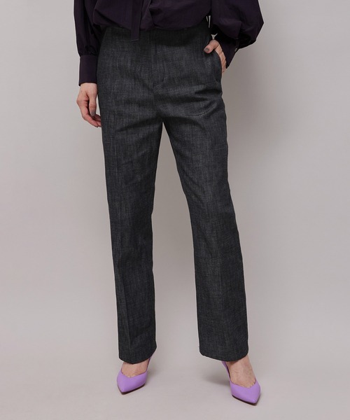【素材】 デニムと見間違うぐらい、限りなく本来のデニムに近づけたクオリティの素材です。デニムの本場備後地区で反応染め(リアクティブダイ)による糸染め、製織、仕上げをすることで、本物のデニムさながらのクオリティーに仕上げ、さらに反応染めにより色落ちしないのでお手入れも簡単。きれいめにも、カジュアルにも着用いただける素材感です。 【デザイン・シルエット】 すっきりとした腿回りのストレートパンツ。素材がデニム見えですので、きれいめにもカジュアルにも着用できます。どんなアイテムとも合わせやすいシルエットですので汎用性の高いパンツです。※同型でガンクラブチェック柄もございます。 【カラー】 ブラック1色展開。 【その他のポイント】 同シルエットでチェック柄のガンクラブチェック ストレートパンツ(品番:GGS32160)もございます。 【おすすめのスタイリング】 テーパードパンツのように何にでも合わせやすく、新鮮に見えるストレートパンツ。ウエスト位置も高めに設定していますので、スタイルよく着用いただけます。 ---------------------------- 透け感:なし 裏地:なし 伸縮性:なし 光沢感:なし 生地の厚さ:中肉 ポケット:あり 開き:ファズナー 洗濯方法:手洗い可能 ---------------------------- 【モデル情報】 モデル身長:171cm着用サイズ:38 ※画像の商品はサンプルです。 実際の商品と仕様、加工、サイズが異なる場合がございます。 ※撮影場所やライティング、お使いのモニター環境によって色の見え方が異なる場合がございます。 ※商品のカラーは画像の色味をご参照ください。動画は仕様説明のため、色味が実物と異なる場合がございます。