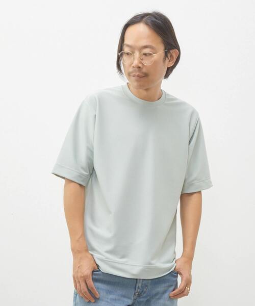 サラっとした質感と光沢がポイントのヨコ方向のリブ素材を使いました。無地っぽいけど無地ではない絶妙な主張感のTシャツに仕上がりました。 <素材について> ・サラっとした質感に加えヨコ方向にハリがあるので、通気性も良く夏向きの仕上がりです。 <デザインの特徴> ・ベーシックなクルーネックTシャツですが、絶妙な素材感がグレード感のあるTシャツに格上げしてくれています。 <サイズ感・シルエットの特徴> ・適度なゆとりでベーシックなフィット感のシルエット。タイト過ぎずルーズ過ぎず、程よいバランスに仕上げました。 ・リラックス感のあるやや長めの肘くらいの袖丈に設定しています。 <サイズ表記> 3=M、4=L ******************** 透け感:なし 裏地:なし 伸縮性:あり 光沢感:若干あり 生地の厚さ:普通 ********************