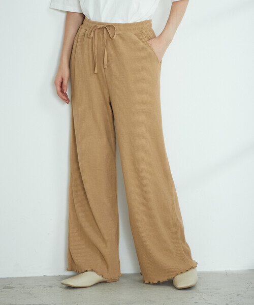 ◆ONIGIRI(おにぎり)のテレコイージーパンツ◆《素材》綿・ポリエステルの素材で肌触りが良く、ストレッチが効いていて伸縮性があります。表面は凹凸のあるリブ組織で、裏面はフラットな編地になっているので、見た目にはすっきり、肌に当たる部分はサラッとしている、履き心地の良い素材です。《デザイン》程よいゆとりがあり、裾に向かって少しフレアが入ったイージーパンツ。ジャージー素材にさらにストレッチ性を加え、着心地が良いのはもちろん、リブのタテ畝による、すっきりとした印象も特徴です。また、ウエストは総ゴム仕様。脇線に3本針飾りステッチを入れて縫い代をおさえ、縫い目が肌にあたりにくいよう、工夫しています。……………………透け感:なし厚さ:普通伸縮性:あり光沢感:なし裏地:なしポケット:あり洗濯方法:洗濯機洗い可…………………※画像の商品はサンプルとなりますので実際の商品と仕様、加工、サイズが若干異なる場合がございます。※こちらの商品はFIVE FOXes独自の採寸方法となっています。本サイトのサイズガイドと採寸方法が異なる場合がありますのでご了承ください。