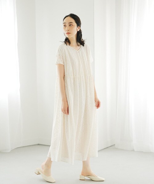 【ーDailyー モノトーン】”きちんと”も”リラックス”も理想的なバランスに。PUAL CE CINが提案するデイリーにも特別な日にも寄り添うモノトーンアイテム。◇大ぶりなレースが甘すぎない上品なレースワンピース◇●デザイン上品なタイルモチーフレースをふんだんに使用したレースワンピース。胸下切り替えからフレアになったフェミニンなディテールは、スタイルアップ効果も兼ね備えたデザインに仕上げました。Vネックとクルーネックの2WAYで着用可能。その日の気分によって変化をお楽しみいただけます。結婚式や二次会、パーティーといったフォーマルドレスとしても、デイリーにも着用できるアイテムです。●カラー展開着回しやすいアイボリー/ブラックの2色展開。●素材コットンとポリエステルの混合素材のレースは柔らかく、素肌に触れても安心です。●スタイリング1枚でさらっと着こなすのはもちろんジャケットやカーディガンなど、羽織りを変えればロングシーズン活躍します。===============================透け感:あり裏地:なし伸縮性:なし光沢感:なし生地の厚さ:薄手【スタッフコメント】年齢:20代半ば/身長:154cm/普段着用サイズ:Mサイズサイズ感:ワイドな身幅でリラックス感のある着心地。154cmで足首まで隠れる丈感でした。素材感:レースワンピは素肌に触れても不快感なく、ストレスフリーな着心地です。===============================※撮影場所やお使いのモニター環境により若干お色味が異なる場合がございます。特にロケの撮影では明るく見える傾向にございます。※予約商品はサンプルで撮影をしております。若干の仕様が変更になる場合がございますので予めご了承の上ご注文くださいますようお願いいたします 。