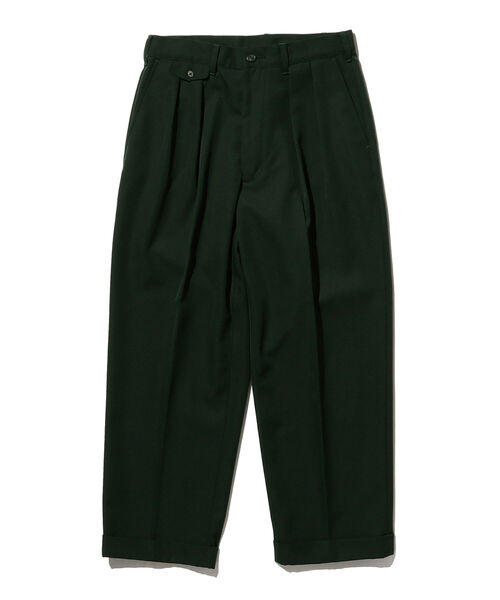 シックかつ遊びのあるカラー ■デザイン 落ち着いた色調の生地を使用した<BEAMS PLUS>カラー ワイドトラウザーズ。遊び心と品のあるプレップスタイルを表現しています。 ■ディテール 傾斜をつけたアメリカンポケット、トラディショナルな雰囲気のコインポケット、両玉縁仕上げのバックポケットの仕様。 ■サイズ 定番の2プリーツ トラウザーズをベースにレングス長をフルレングス、シルエットをややゆったりとアレンジ。裾にかかるテーパーを従来よりも緩く変更しています。 ■素材 、尾州産地で生産したポリエステルウールのツイル素材を使用。タテ糸を90本以上打ち込み、秋冬シーズンらしい高密度な生地感とイージーケアが特徴です。 同素材のジャケット(商品番号:38-16-0386-887) の用意がございますので、セットアップでのコーディネートもお楽しみいただけます。 Model:H 178cm W 63kg Size:M ※撮影環境による光の当たり具合やパソコンなどの閲覧環境によって、実際の色調と異なって見える場合があります。あらかじめご了承ください。商品の色調は白背景商品単体で撮影した画像をご参照ください。 BEAMS PLUS / ビームス プラス ”長年着られる飽きのこない本物の男服”をコンセプトに、次世代へと続くカジュアルウェアのオーセンティックを追求しています。
