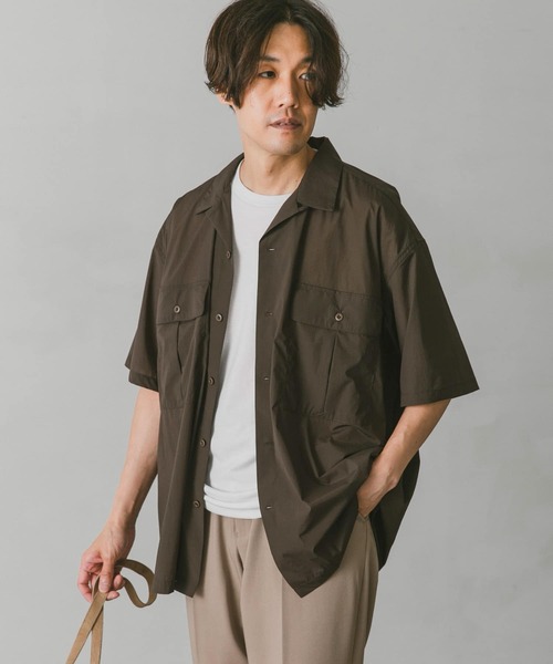 着心地がとても軽いナイロン素材のオープンカラーシャツが登場。ナイロンとポリウレタンを組み合わせ、軽さとストレッチ性を両立させました。オープンカラー型ですがトップボタンを閉めて、ボックスシャツとしてもお召いただけます。ヨークにつけたハンガーループは例えばアウトドアシーンでさっと洗って乾かせるようになにかに引っ掛けることを想定しています。※強い力がかかると、破れる可能性があります。着用時は、他のものとの引っ掛けにご注意ください。※商品画像は、光の当たり具合やパソコンなどの閲覧環境により、実際の色味と異なって見える場合がございます。予めご了承ください。※商品の色味の目安は、商品単体の画像をご参照ください。▼お気に入り登録のおすすめ▼お気に入り登録商品は、マイページにて現在の価格情報や在庫状況の確認が可能です。お買い物リストの管理に是非ご利用下さい。-----------------------------透け感:ややあり伸縮性:あり裏地:なし光沢:ややありポケット:あり-----------------------------