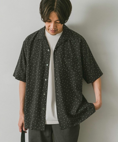 【洒落た大人の"ドットシャツ"】暑い夏の季節にこなれたスタイルを演出できるドット柄のオープンカラーシャツをご用意しました。 【生地】均等ではない"ランダムドット"をあしらいました。均等なドットにはないこなれた印象に仕上がっています。柔らかさとコシを両立した生地を採用しており、マットな表面でやらしさのない生地のため、カジュアルなアイテムとの相性も抜群です。 【ディテール】ゆとりのあるリラックスシルエットを採用し、大きめの衿がポイント。前下がりも低めに設定し肩肘の張らない大人の休日ウェアに仕上がりました。 【スタイリング】イージーパンツや太めのトラウザーで大人の余裕あるスタイリングがおすすめ。もちろんデニムやチノパンなどのカジュアルアイテムや、きれいめパンツなどとも相性抜群です。足元はサンダルからスニーカー、ローファーとどのアイテムとも相性よく合わせていただけます。 ※直射日光や蛍光灯に長時間あたると変色したり、色褪せすることがありますのでご注意ください。 ※商品画像は、光の当たり具合やパソコンなどの閲覧環境により、実際の色味と異なって見える場合がございます。予めご了承ください。 ※商品の色味の目安は、商品単体の画像をご参照ください。 ▼お気に入り登録のおすすめ▼ お気に入り登録商品は、マイページにて現在の価格情報や在庫状況の確認が可能です。 お買い物リストの管理に是非ご利用下さい。 ----------------------------- 透け感:なし 伸縮性:なし 裏地:なし 光沢:なし ポケット:あり -----------------------------