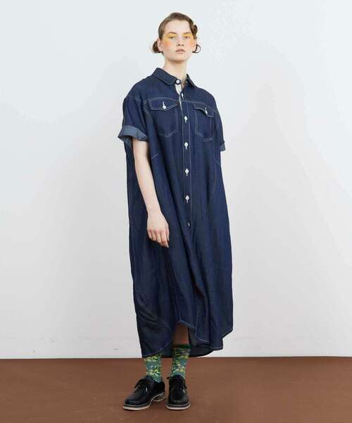 サラッとしたドライタッチに柔らかな光沢感が上品な印象を出しているテンセルデニムを使ったシャツワンピース。 ドロップショルダーにゆったりとした身頃ながら生地の持つトロミでスッキリとしたシルエットを作っています。 袖は折り返したようなデザインで軽やかさをだし、裾のカットもラウンドしてるので動きによってキレイな表情を出しています。 フロントを開けるとオリジナルのジャガードテープが覗いていたり、脇にポケットが付いていたりと、羽織りとしても活躍出来るアイテムです。 【ブランド情報】 FRAPBOIS/フラボア 2001年にブランドスタート。 「大人げない大人の服」をコンセプトに、大人が着るリラックスしたデイリーウェアを提案するコレクションブランド。 レディースとメンズのアイテムをご用意しています。 ---------------------------------------------------------------------- 【お気に入り登録】がおすすめです。 ■商品のお気に入り登録 再入荷、残り1点、セールなどの通知を受け取ることができます。 →商品ページ ♡ をクリック ■ショップのお気に入り登録 新商品や再入荷、セール、クーポン配布、ショップニュースなど、いち早くショップの情報を受け取ることができます。 →「♡お気に入りショップに追加」 をクリック ----------------------------------------------------------------------