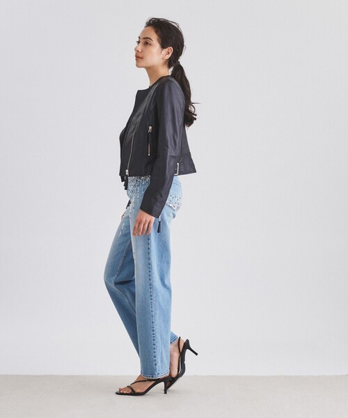 しなやかなラムレザーでお作りした、上質な素材を楽しめるシンプルなレザージャケット。ライダース型をベースに、肩のエポーレットを外し、ノーカラーにする事でハードさを和らげて、女性らしい雰囲気薫る一枚に仕上げました。コンパクトなシルエットに落とし込み、日常にさらっと気軽に纏えるデザインに。素材の良さ・着回しやすさ・シルエットの美しさを存分に味わえる、ワードローブの主力アイテムをこの機会にぜひ。※こちらの商品はサンプル品を撮影しております。実際の商品と色、仕様、加工、サイズが若干異なる場合がございます。予めご了承下さいませ。