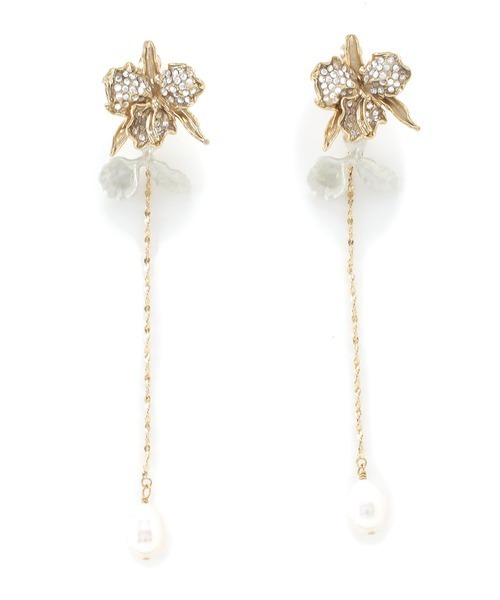 【女性らしいフラワーモチーフが耳元を華やかに彩るピアス】 【Design/Styling】 ヴィンテージライクなフラワーモチーフが目を引く、上品レディなオリジナルピアス。淡水パール付きのチェーンを垂らしても、取り外してお花のみにしても身に着けられる便利な2WAYデザイン。その日の気分やスタイリングに合わせて自由にアレンジが楽しめます。ストーンをMIXしパール風加工を施したAとメタルのみで仕上げたBの2タイプをご用意しました。 ※照明の関係により、実際よりも色味が違って見える場合があります。 またパソコン・スマートフォンなどの環境により、若干製品と画像のカラーが異なる場合もございます。予めご了承ください。 商品の色味は、商品単品画像をご参照下さい。 ※商品画像はサンプルのため、色味やサイズ等の仕様に変更がある場合がございますので、予めご了承ください。