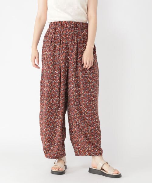 ーーー サラッとした肌触りの素材を使用したゆったりとしたシルエットのイージーパンツ。 ウエストはゴム紐で調節可能のイージー仕様に。 ヒップ回りはゆったりとさせ、裾にかけて細くした少し丸みのあるシルエット。 接触冷感や吸水速乾、イージーケア(洗濯後のしわになりにくい)、紫外線防止、マシーンウォッシャブルなど多機能付き。 ーーー オリジナルのプリントが印象的な主役パンツなので、シンプルなTシャツやシャツ合わせがおすすめです。